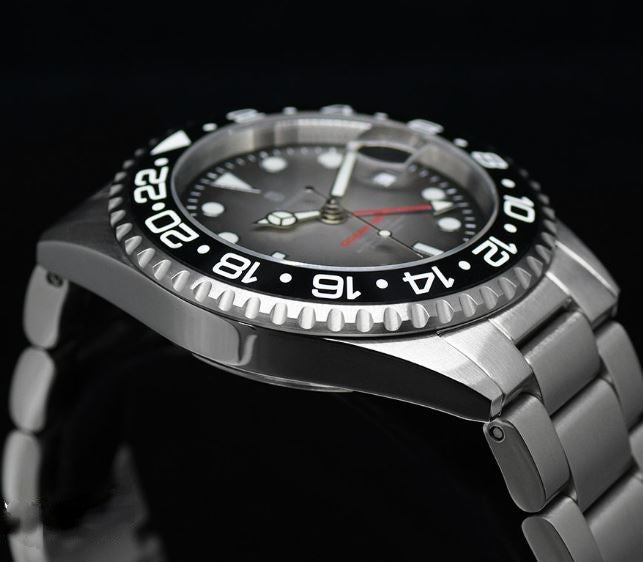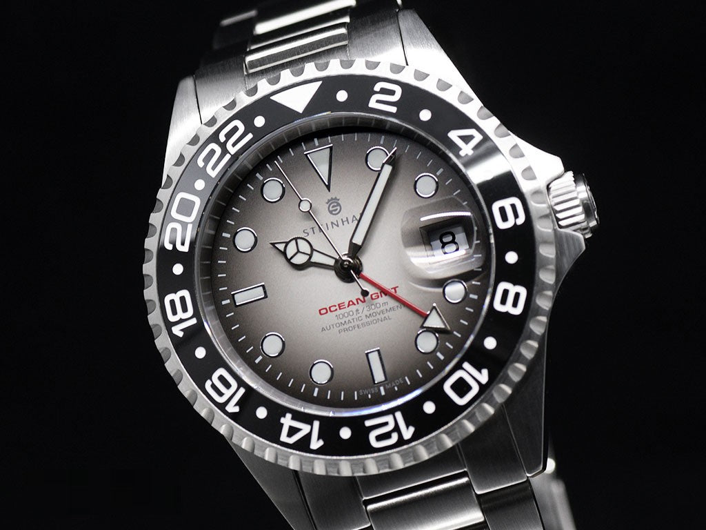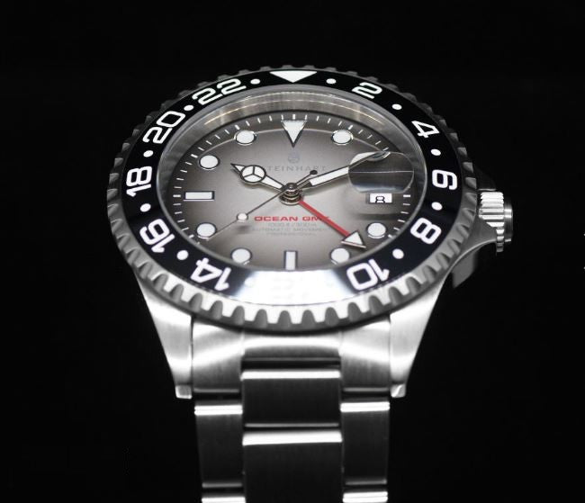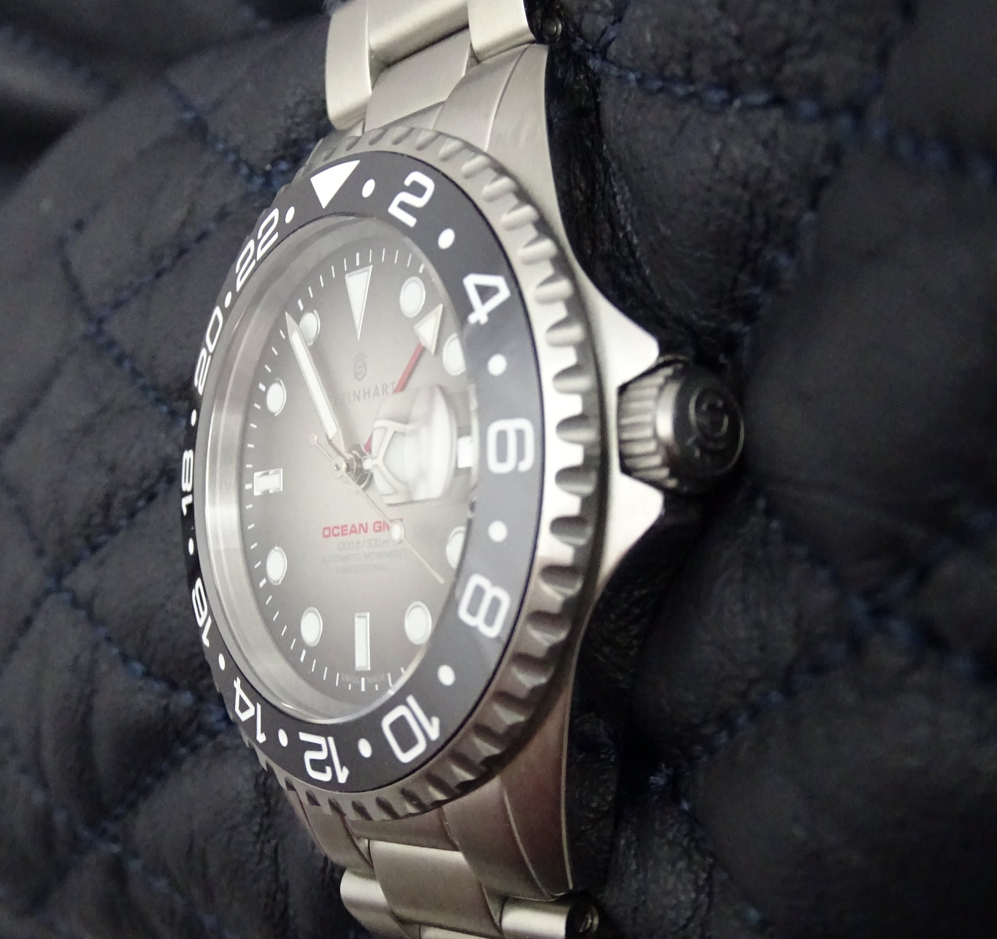 The Steinhart OCEAN 1 GMT PREMIUM BLACK CERAMIC is made to the highest of Swiss standard. The case of the Steinhart Ocean 1 GMT is made from 316L stainless steel and has a satin brushed finish on the top of the lugs and polished sides of the case. The case has a 49mm lug-to-lug dimensions making this quite comfortable on most wrist sizes.